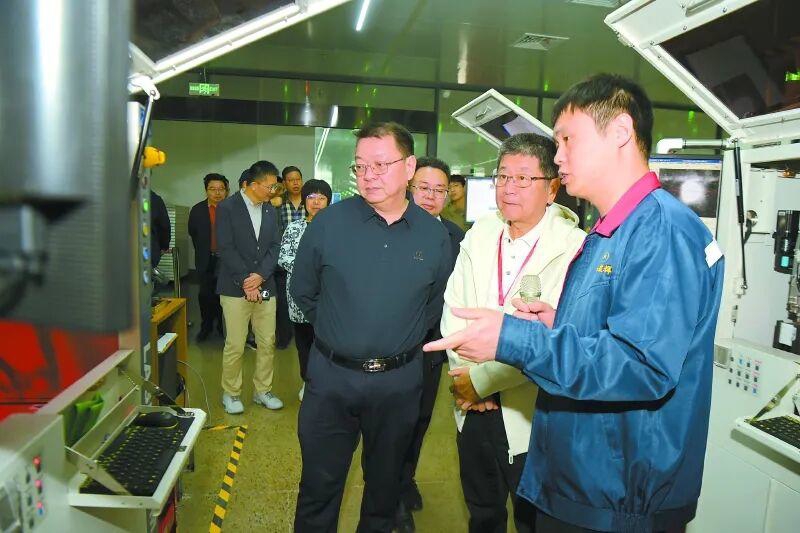全国晚报社长总编调研组参观南充溢辉电子科技有限公司生产车间。